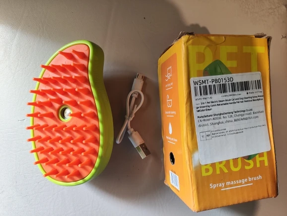 This brush is super cute, it emits a very subtle steam that perfectly helps prevent the hair from falling everywhere, and I feel like it gives the dogs the sensation as if their mom is bathing them. And that is nice. The item looks of good quality, seals its water tank well and is not noisy at all. In my case, it stopped turning on when the water tank ran out, but then it turned on again. It's very pretty and I thought it was an excellent idea to have put that vapor to prevent the hair from flying everywhere. I don't think it's too easy to clean because I suppose you have to be careful not to get it wet, but it seems like a very good item to me. The bristles are not as soft as they seem; they are almost completely rigid. But even so, being thick, they do not harm the sensitive skin of the puppies, like the bristles that are super thin wires. In the case of my dog, she did not show sensitivity. I think this is a highly recommended item.